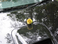 出かけるために外に出ると、栗のイガイガが車のボンネットにコロン。